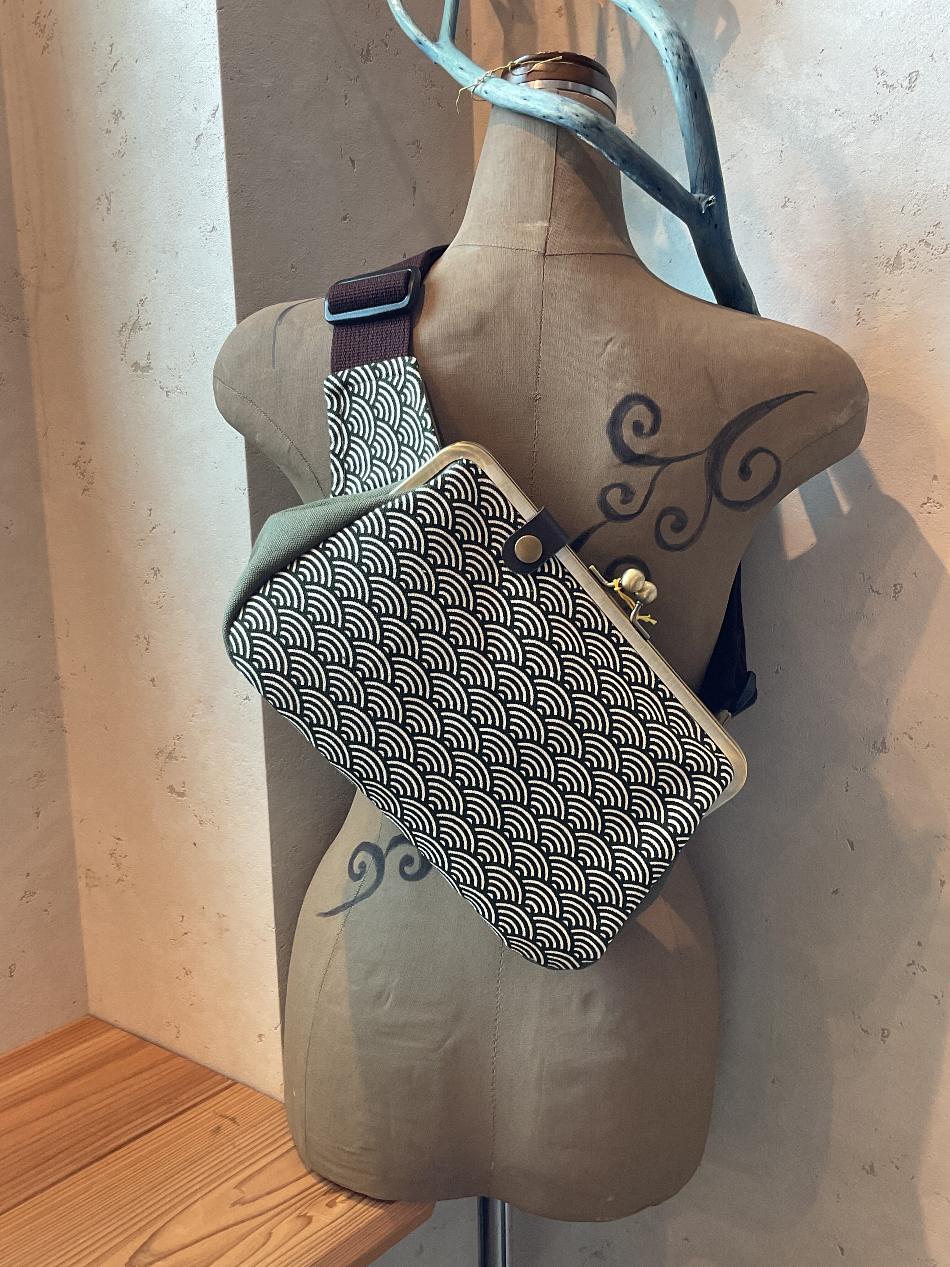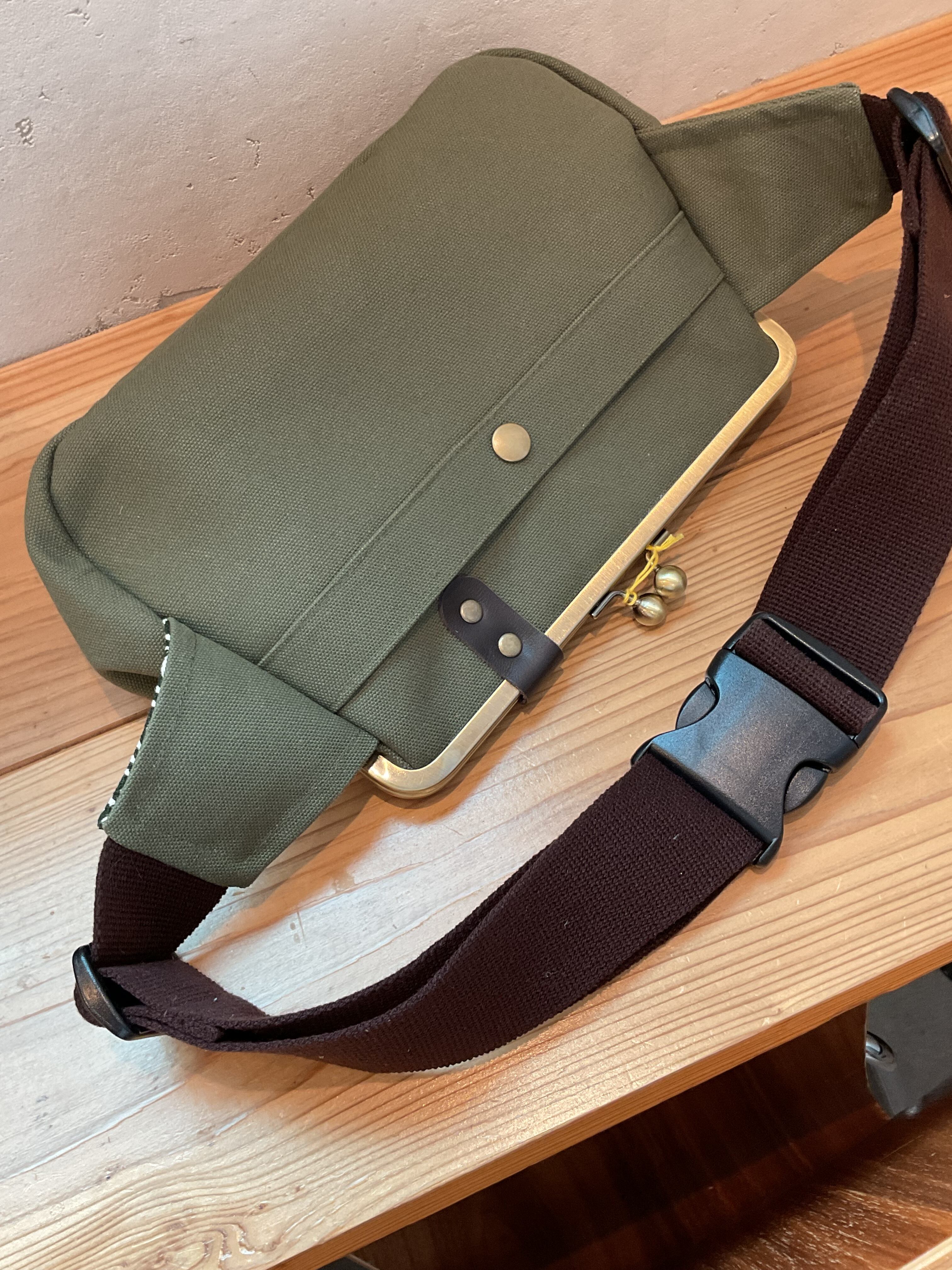 斜めに背負えるワンショルダー斜めがけがま口です。