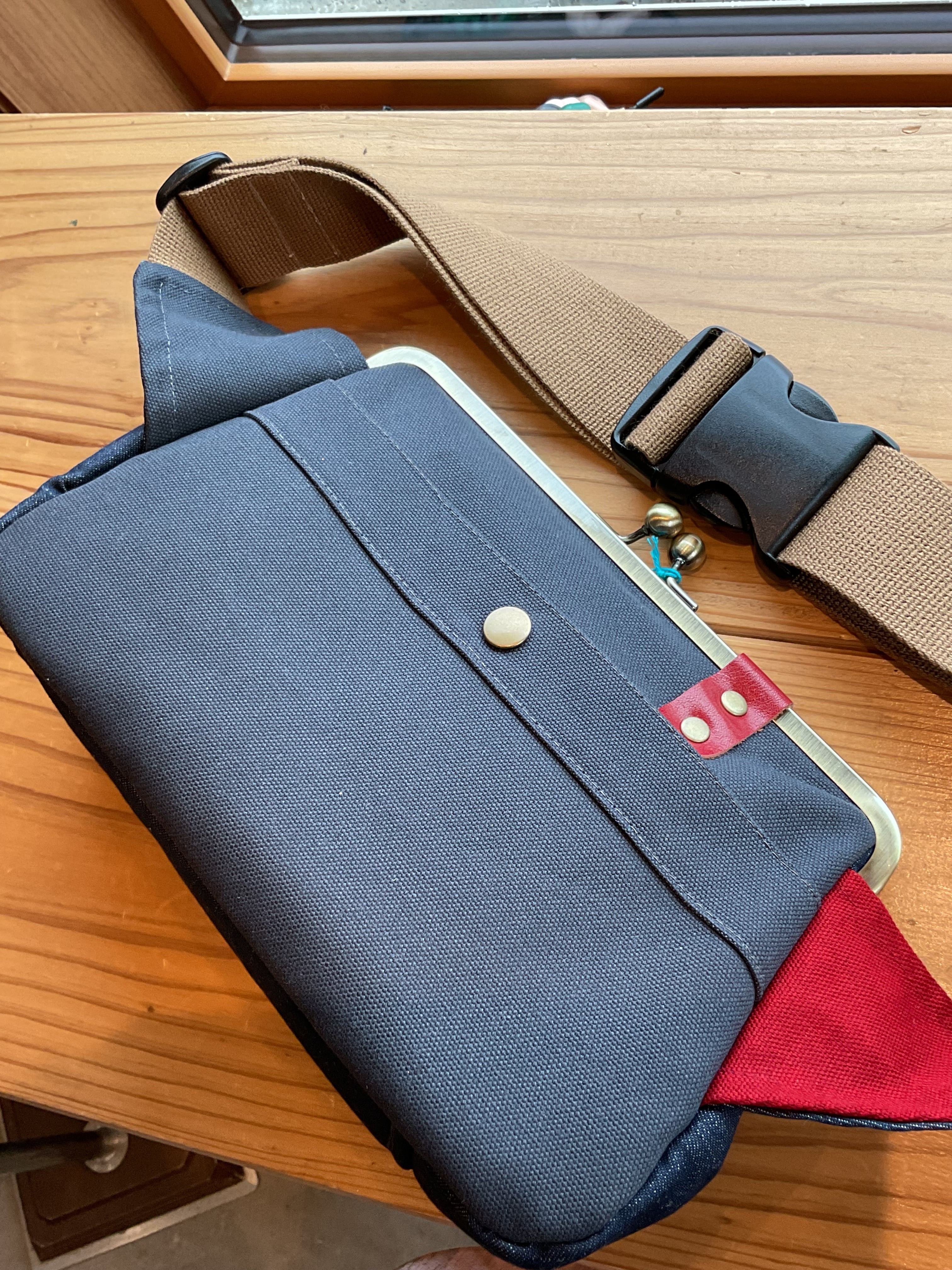 斜めに背負えるワンショルダー斜めがけがま口です。