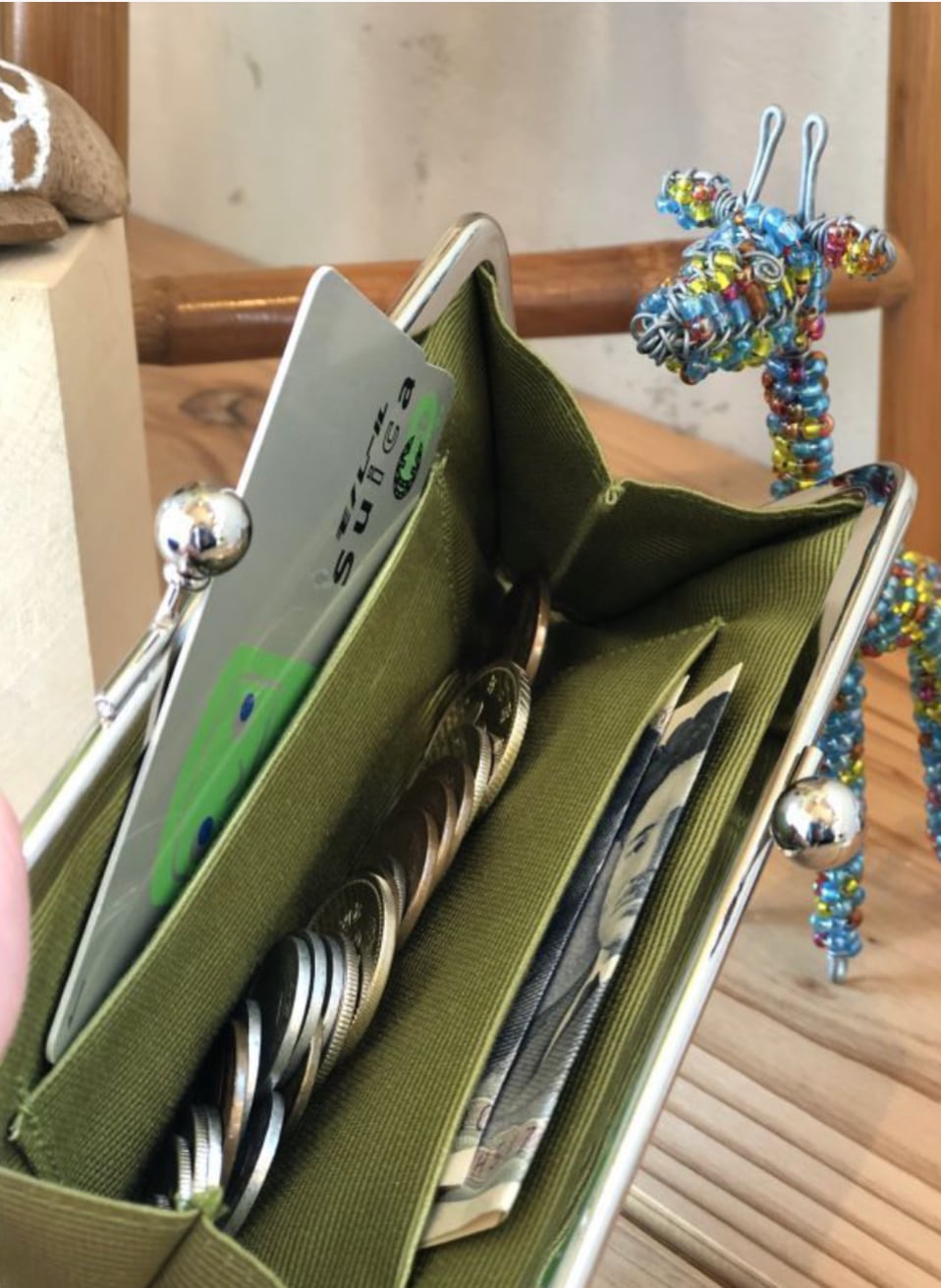 さらに、そのポケットにICカードを入れるとがまぐちから出すことなく、改札を通ることもできます。