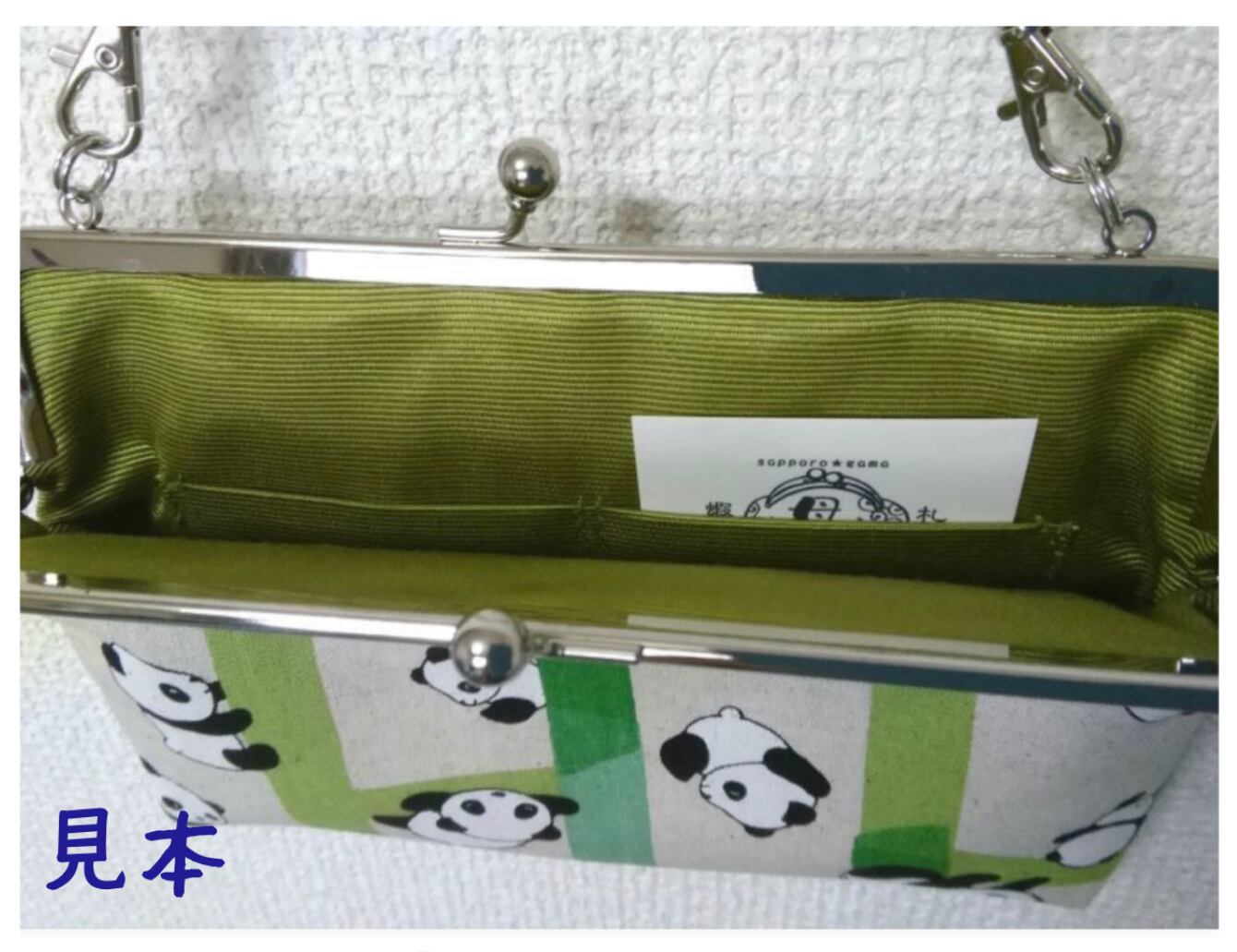 中には振込カードや、印鑑証明カード、保険証、診察券などを入れるのに便利なポケット付きです。革の24cmのナスカン付き取っ手が付いています。